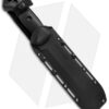 - Black serrated flat blade made from 1095 Cro-Van steel.