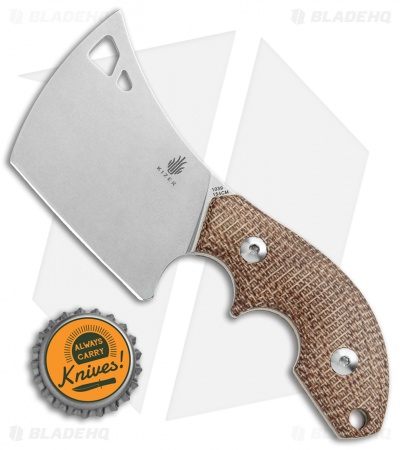 The Kizer Butcher is a fixed blade knife that really makes a statement. It’s most obvious feature is it’s ridiculously over-the-top cleaver style blade. At first glance, it looks like something a goblin would wave at you while demanding a bridge toll, it’s actually a surprisingly ergonomic and practical knife. It has a micarta handle with dual finger choils, so it is secure even in hard use.