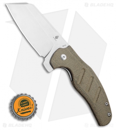 This Blade HQ Exclusive Kizer Vanguard Sheepdog features a stonewash finished blade made of CTS BD1N steel and green micarta handle scales.