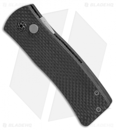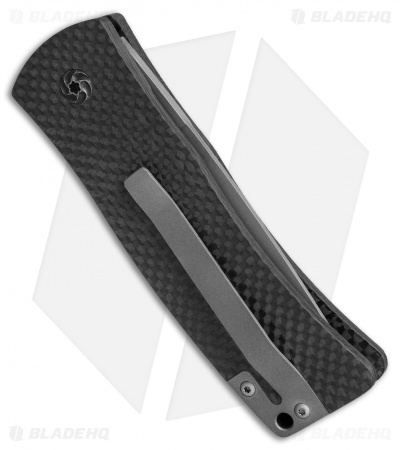 The Bomb Ordnance is a custom Les Adams automatic knife with a state of the art A.O.S. locking features. This Always On Safety automatically locks the blade in the open and closed position with a quick release side lever. The blade remains in a safely locked position until you release the lever and press the firing button. A high torque spring rapidly fires the blade into open position. Carbon fiber handles and a bead blasted titanium pocket clip provide an elegant look to the design. The blade is made from 154-CM stainless steel with a durable bead blast finish. This is a custom made automatic that is new from the maker.