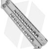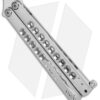This Les Voorhies Custom butterfly knife is outfitted with a clip point blade and a skeletonized titanium handle and pocket clip.