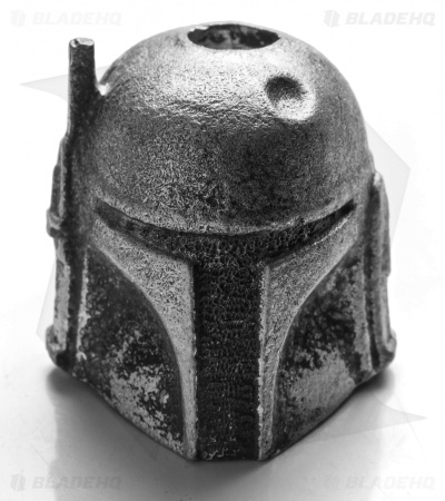 This impressively designed Blade HQ Exclusive Bob the Bounty Hunter lanyard bead from Marco Magallona is made from silver pewter. These are larger sized skull beads but they still weigh in at around an ounce, so you will not add too much weight to your knife. The Bob the Bounty Hunter Skull bead is the ultimate knife accessory for any movie fan!