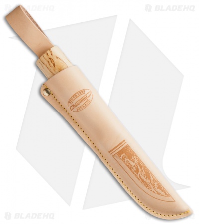 A truly versatile and beautiful knife, the Arctic Carver is a blade you’ll come to rely on. Made of carbon steel for strength and durability, the standard blade is designed for both slicing and piercing. The curly birch handle is attractive, but also comfortable in the hand. This knife is excellent for word carving and crafts, but is tough enough for fishermen and hunters. The Arctic Carver comes with a natural leather sheath with attached belt loop that is embossed with the Marttiini logo and a stylized representation of the blade.