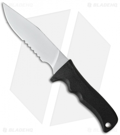 Medium Short Clip Point (MSCP) fixed blade with a partially serrated edge.