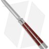 The McAhron “Tokyo Special Tanto” butterfly knife has a Bob Lum inspired design with a sharper point. The handles are bolstered titanium with red G-10 scales. The pivots have silicon bronze washers and stainless bushings that perform well and keep handle play to a minimum. The Tokyo Special Tanto is a latchless balisong.