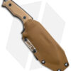 - Coyote brown G-10 handle scales on a meaty full tang.