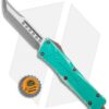 This Blade HQ Exclusive Microtech Bounty Hunter Combat Troodon has a green battle tarnished aluminum chassis equipped with a red thumb slide, modified breaker tip, and hardware. Its apocalyptic finished pocket clip sports a Mandalorian skull symbol, serial number, and date manufactured. The tanto blade features satin flats and apocalyptic finished grinds. Be quick on the draw, these won’t last!