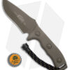 Microtech’s Currahee knife is built like a tank. It has a full-tang blade with a partially serrated edge and a stonewashed finish. The polymer handle is outfitted with a lanyard and knocker bead. Includes heavy duty ballistic nylon sheath with MOLLE locks.