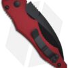 The Kestrel knife from Microtech has been revived as a 2011 model. This automatic knife features a black DLC finished S35-VN stainless steel blade with a partially serrated edge. The red anodized aluminum handle has textured grip inserts on front. The frame is tapered front to back with an open build and barrel spacers. This is the tactical model with black finished hardware and pocket clip. Includes nylon sheath.