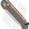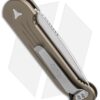 This model has a partially serrated, stonewashed Elmax steel blade and tan anodized handle with bead blast finished hardware.