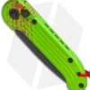 This Zombietech model has a green anodized handle with red blood splattering. The blade is black with a plain edge.