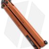 The latest generation of the Tachyon butterfly knife, the production Microtech Tachyon III, distinguishes itself from previous models with milled, single-piece channel construction handles, a spring latch, and a standard pocket clip. The blade showcases a non-sharpened swedge-ground tip and milled grooves with the Microtech logo, production date, and blade steel markings up front.