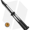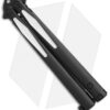 The latest generation of the Tachyon butterfly knife, special edition Venom of the production Microtech Tachyon III, distinguishes itself from previous models with milled, single-piece channel construction handles, a spring latch, and a standard pocket clip. The blade showcases a non-sharpened swedge-ground tip and milled grooves with the Microtech logo, production date, and blade steel markings up front.