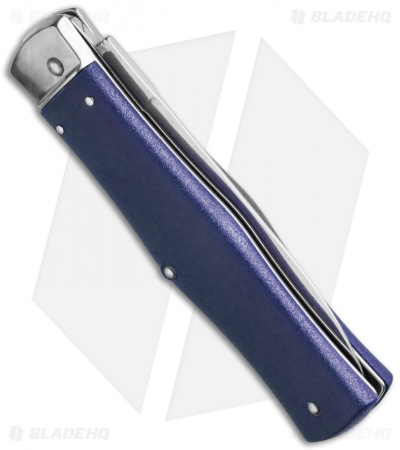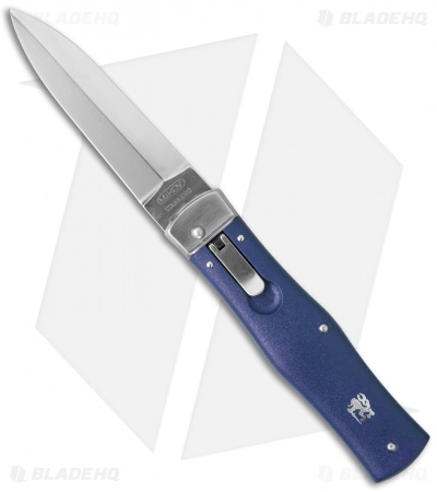 This model has a blue handle and a dagger blade.