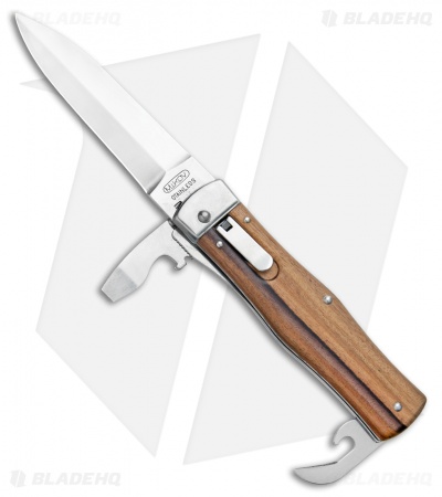This model features 3-tools-in-1, a cocobolo wood handle, and a dagger blade.