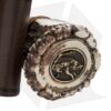 The Muela Lobo fixed blade sports a massive recurve Bowie style blade made from stainless steel with a satin finish. Its handle is crafted from thick crown stag fitted with a nickel silver guard and a decorative medallion insert on the pommel. The Lobo is an exceptional piece for the collector or hunter. Includes a heavy-duty brown leather belt sheath.