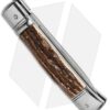 This Old Style Stiletto comes in the Lever Lock style with a stag handle and a flat grind blade. Old Style offers collectible Italian stilettos made with traditional knife-making techniques. This 8″ Lever Lock model has a stag antler handle with a sturdy stainless steel liner. Brass pins add a classic finishing touch to the design. The blade comes in a dagger style with a plain edge and a polished finish. Add classic Italian style to your collection with the Old Style Lever Lock stiletto.