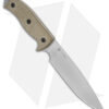 - Tan micarta handle scales over a full tang.