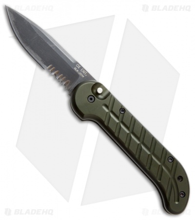 Ox Forge Original Automatic Knife Green (3.75″ Black Serr)