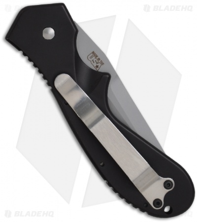 This Wortac knife features a bead-blast finished stainless steel blade. The handle is T6 black anodized aluminum. The contour of the handle fits the hand quite well and allows for a firm grip. The action is quick and the lock-up is respectable. Has a satin finished pocket clip (tip up) for easy carry. A Worden & Crawford design.