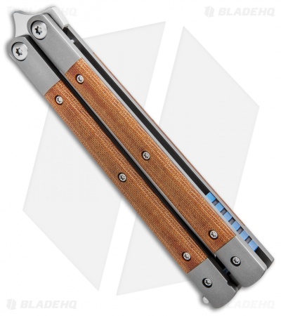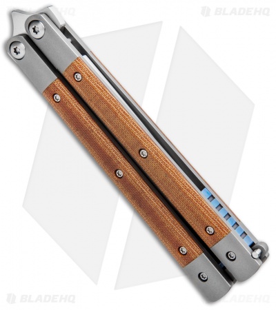 This model of the Penasong sports a titanium handle with brown micarta inlays. The blade is made from satin finished CPM-154.