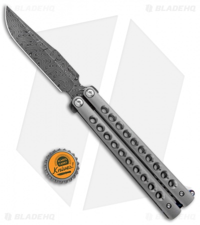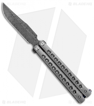 Pena Knives Custom Penasong Butterfly Knife Ti w/ Mokuti Latch (4.5″ Damascus)