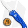 - Mirror finished 154-CM stainless steel blade with a partially serrated edge.