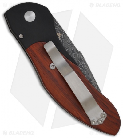 The Doru automatic knife from Pro-Tech was designed by renowned knife maker Allen Elishewitz. This Limited Edition model has a beautiful Damascus blade. The matte black anodized T6-6061 aluminum handles have Cocobolo wood inlays and a mosaic pin push button. The pocket clip is satin finished and tip-up. The Doru is exceptionally comfortable and the construction and action on this knife is second to none.