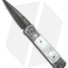The Large Brend Auto #1 measures in at almost 11 inches overall, and is a big knife by any standard. The Brend 1 features Walter Brend’s famous “Model 1” blade shape. This knife has a satin finished 154-CM blade with a plain cutting edge. The T6-6061 aluminum handle is black anodized and fitted with black Micarta inlays with a matching Micarta inlay on the firing button. The Brend Auto 1 comes with a black pocket clip. This is a giant knife, but despite the size, it’s remains one of the fastest autos on the market.