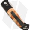This Brend 2 automatic knife has a satin finished 154-CM steel blade and black anodized T6 aluminum body with maple burl inserts. Satin hardware and black pocket clip.