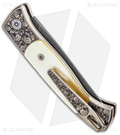 Pro-Tech Brend 2 Small Ultimate Custom Auto Knife Gold Lip Pearl (2.9″ Damascus)