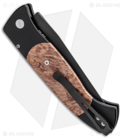This Brend 3 Auto features a black DLC finished blade and black anodized aluminum handle with maple burl inlays.