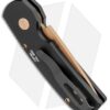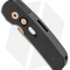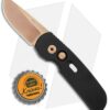 This Calmigo model features an impressive rose gold finished blade. The hardware, pivot, and firing button have a matching rose gold finish. The Pro-Tech Calmigo is a stout CA legal automatic knife geared toward everyday carry and general utility. Its black anodized aluminum handle has jimping on the spine, paired with a shallow finger groove, to provide ample grip and precise control over the blade. The Calmigo is fitted with a sliding safety lock and a deep carry pocket clip, making it a comfortable and secure EDC option.