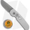 This Calmigo model features a gray anodized handle and a stout CA legal drop point blade with a bead blast finish and a plain cutting edge. The Pro-Tech Calmigo is a compact automatic knife geared toward everyday carry and general utility. Its anodized aluminum handle has jimping on the spine, paired with a shallow finger groove, to provide ample grip and precise control over the blade. The Calmigo is fitted with a sliding safety lock and a deep carry pocket clip, making it a comfortable and secure EDC option.