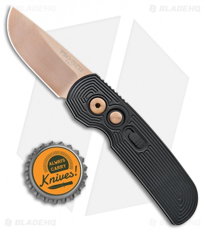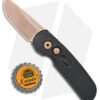 This Calmigo model features an impressive rose gold finished blade and a TRON textured handle. The hardware, pivot, and firing button have a matching rose gold finish. The Pro-Tech Calmigo is a stout CA legal automatic knife geared toward everyday carry and general utility. Its black anodized aluminum handle has jimping on the spine, paired with a shallow finger groove, to provide ample grip and precise control over the blade. The Calmigo is fitted with a sliding safety lock and a deep carry pocket clip, making it a comfortable and secure EDC option.