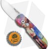 The Pro-Tech Calmigo is a compact automatic knife geared toward everyday carry and general utility. This Custom Calmigo model sports a stout CA legal drop point blade made from 154-CM. Its handle features a custom anodized Lying Burlesque graphic by Peter Kellet and a mother of pearl push button. The Calmigo is fitted with a sliding safety lock and a deep carry pocket clip, making it a comfortable and secure EDC option.