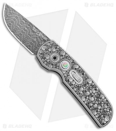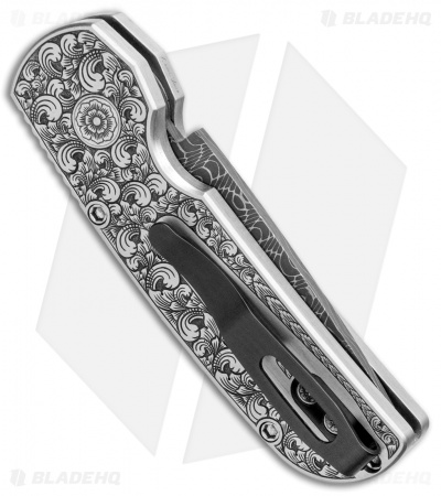 Pro-Tech Calmigo Ultimate Custom Shaw Engraved Stainless (1.9″ Spiro Damascus)