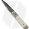 This Steel Custom Runt J4 is a great collection piece. It features a hand satin finished 416 stainless steel frame with mosaic abalone inlays and a matching firing button insert. The clip point blade is Chad Nichols stainless Damascus steel. Pro-Tech’s J4 Runt is an automatic knife that opens with rocket-like force and has superb lockup.