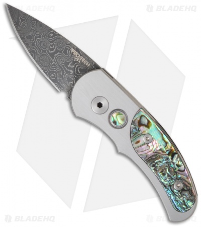 Pro-Tech Custom Runt J4 w/ Abalone Inlays (1.94″ Damascus)
