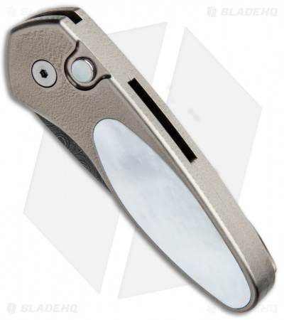 - Bronze anodized titanium handle with a white mother of pearl inlay.