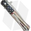 This Custom Edition Pro-Tech Don knife features a satin finished 154-CM stainless steel blade and a mirror polished aluminum handle with a PK Vintage Flag full color anodized finish. It comes complete with a gold pearl push button and a deep carry pocket clip. Limited run of 100 numbered knives.