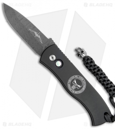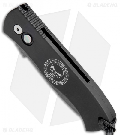 - Black anodized aluminum handle with a smooth surface grip and laser engraved Punisher logo.