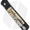This Custom Godfather knife features a Chad Nichols Ladder pattern Damascus blade. The handle is black anodized aluminum with natural tiger coral inlays and a mosaic pin push button insert. Satin finished hardware and a titanium tip-up carry pocket clip.