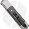 This Godfather knife has a satin finished 154-CM steel blade. The handle is gray aluminum with carbon fiber inlays, satin finished hardware and a black tip-up carry pocket clip.