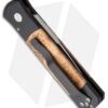 This Godson has a satin finished 154-CM steel blade with a plain edge. The handle is black anodized aluminum with black ash burl wood inlays. Satin finished hardware and black pocket clip.