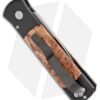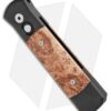 This Godson model has a satin finished 154-CM steel blade and a handle made from black anodized aluminum with Box Elder burl wood inlays. Satin finished hardware and black pocket clip complete the design.