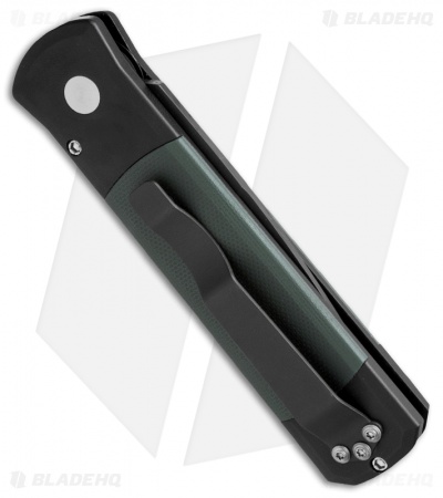 This Godson has a black DLC finished 154-CM blade with a plain edge. The handle is black anodized 6061-T6 aluminum with green G-10 inlays. Black finished tip-up pocket clip for easy carry.