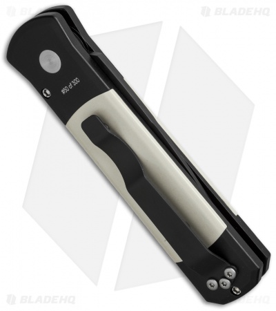 This Chris Kyle custom Godson features a Tuxedo-style handle with “The Legend” logo on the front ivory micarta inlay. The 154-CM stainless steel blade is black DLC finished with a plain cutting edge. Its black anodized 6061-T6 aluminum handle includes a matching micarta push button inlay and black coated pocket clip. This is a limited run of 300 numbered knives.