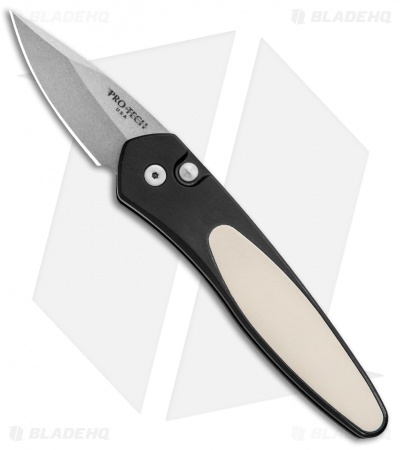 Pro-Tech Half-Breed Tuxedo Automatic Knife Black/Ivory Micarta (1.95″ Stonewash)
