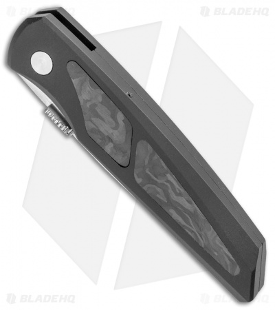 This Blade HQ exclusive Pro-Tech is a modern update to the classic Harkins ATAC D/A automatic knife. It is outfitted with a black anodized handle, marbled carbon fiber inlays, and a stonewashed blade. The hidden automatic release is located under the topmost inlay for covert opening action. One impressive update you’ll notice instantly is the precision milled titanium pocket clip.